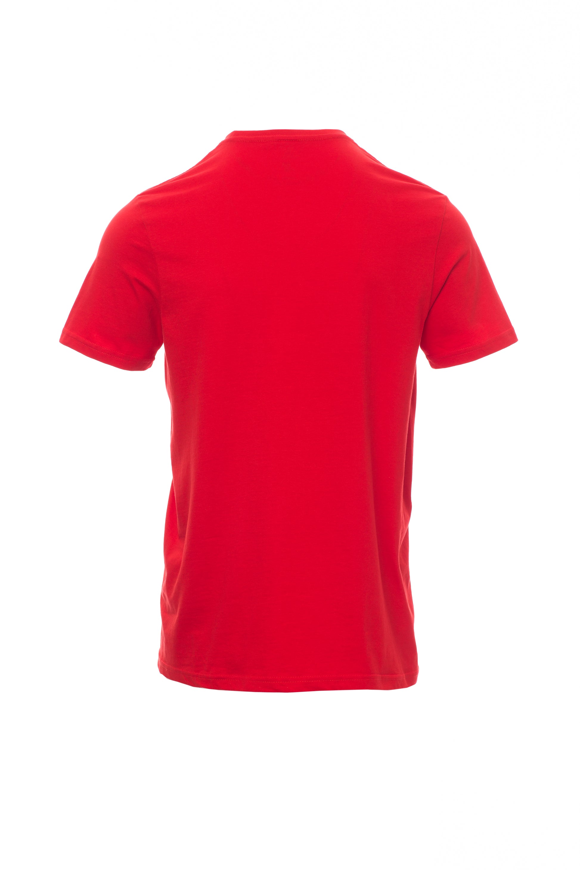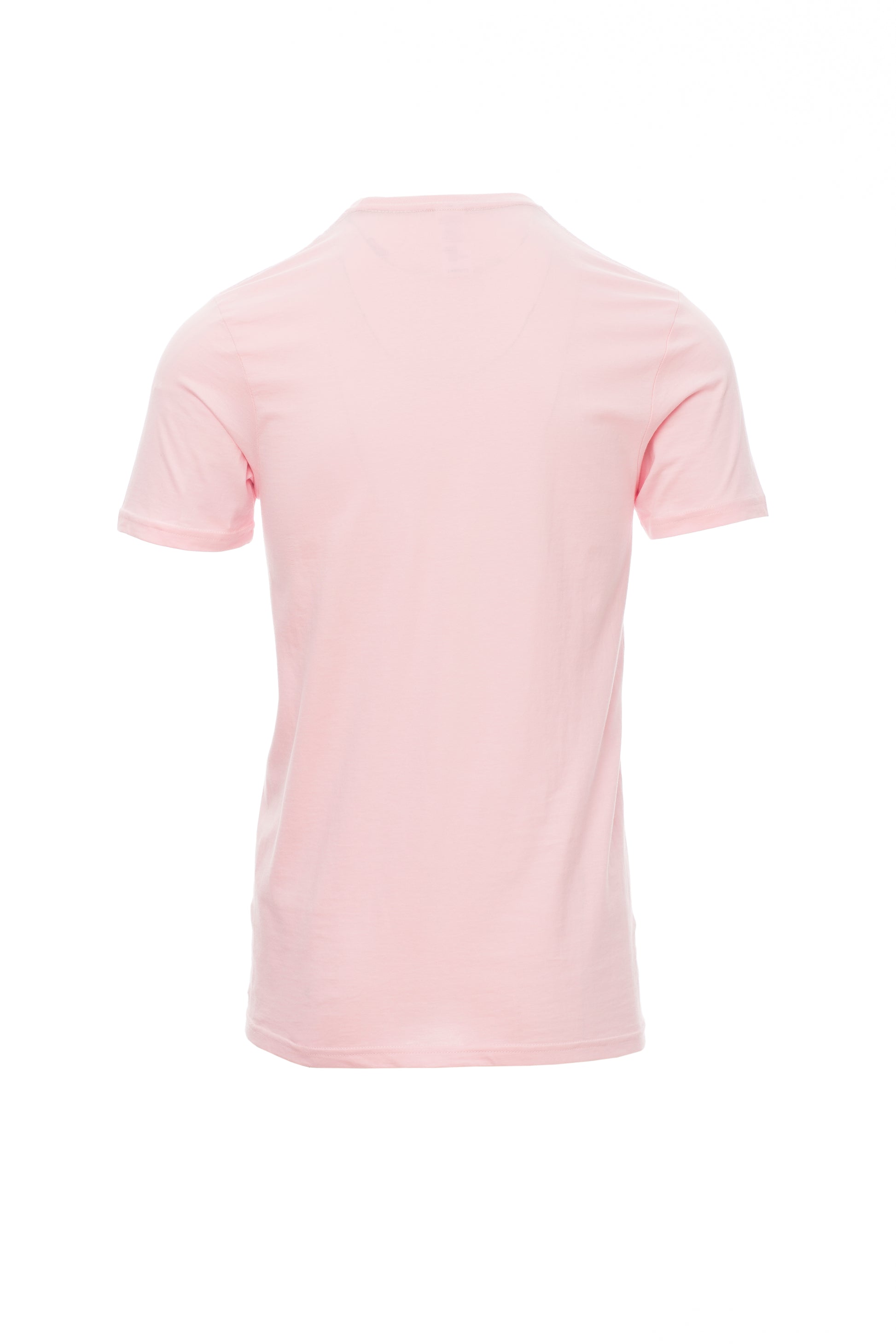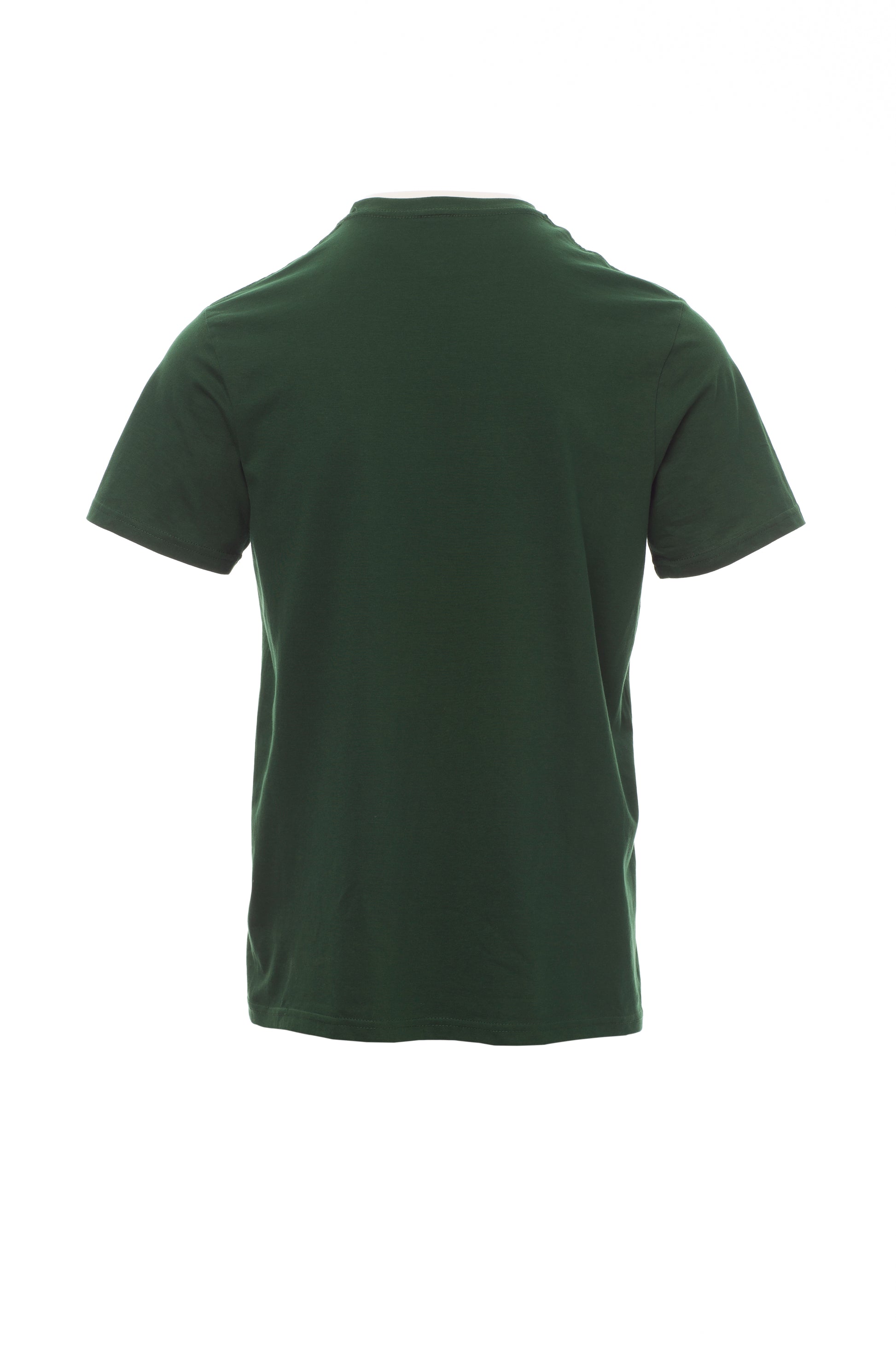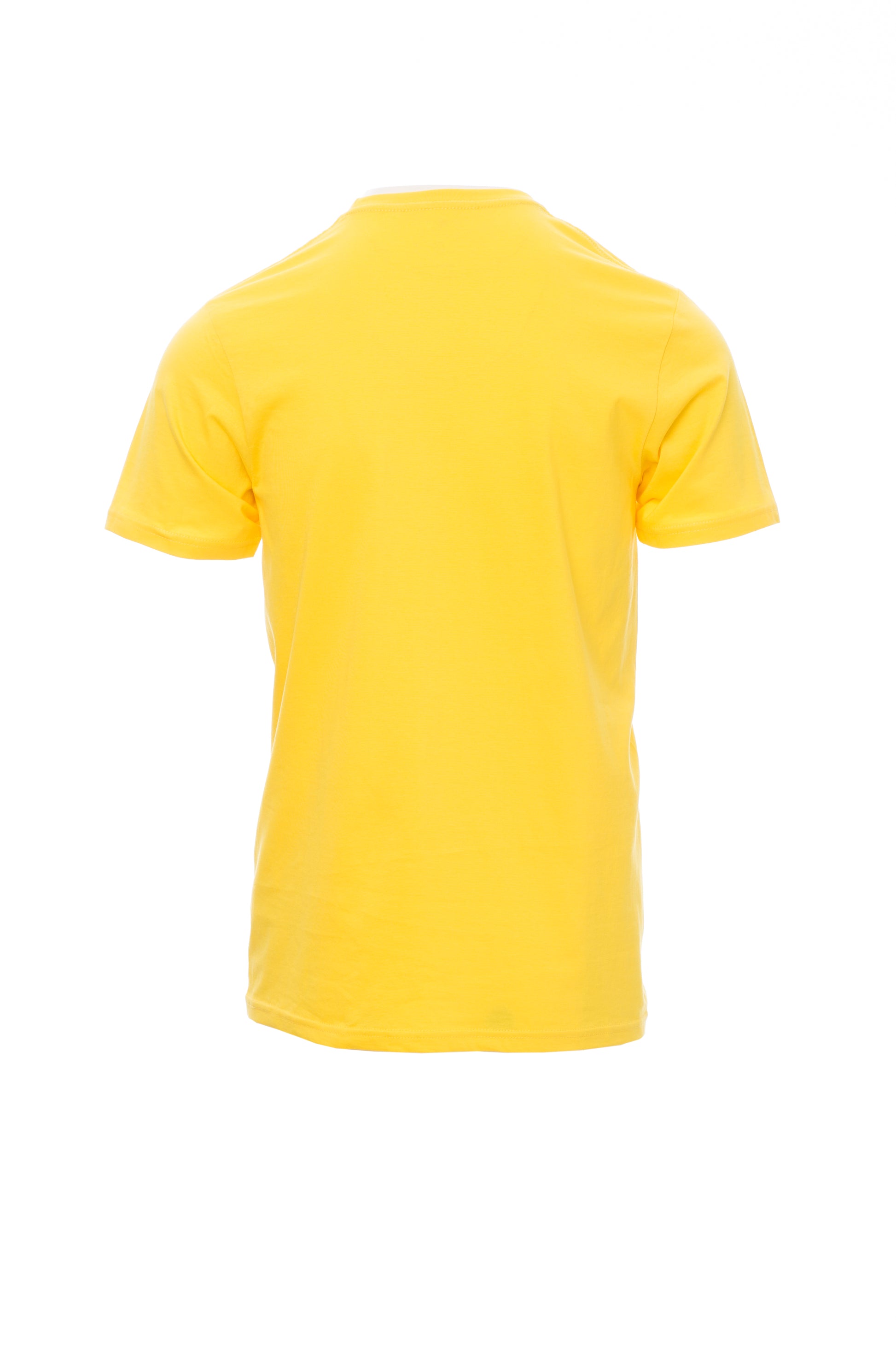 Kortærmet T-shirt med rund hals til mænd, med 1,5 cm spandex mix rib nakkebånd med kantsyning foran, kontrasterende skulder til skulder forstærkningsbånd synlig på indersiden af kraven, stræksømme, rørformet design.
