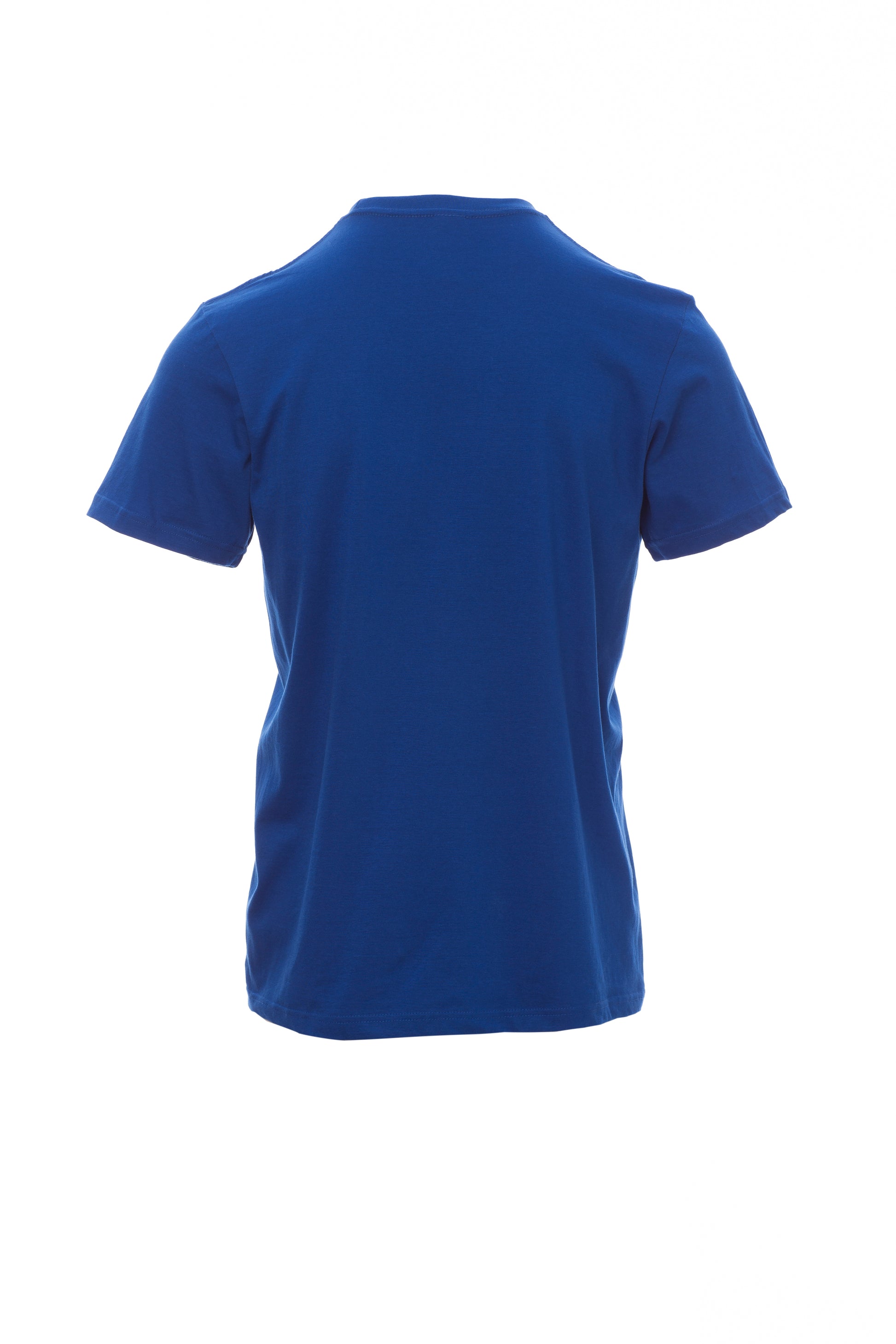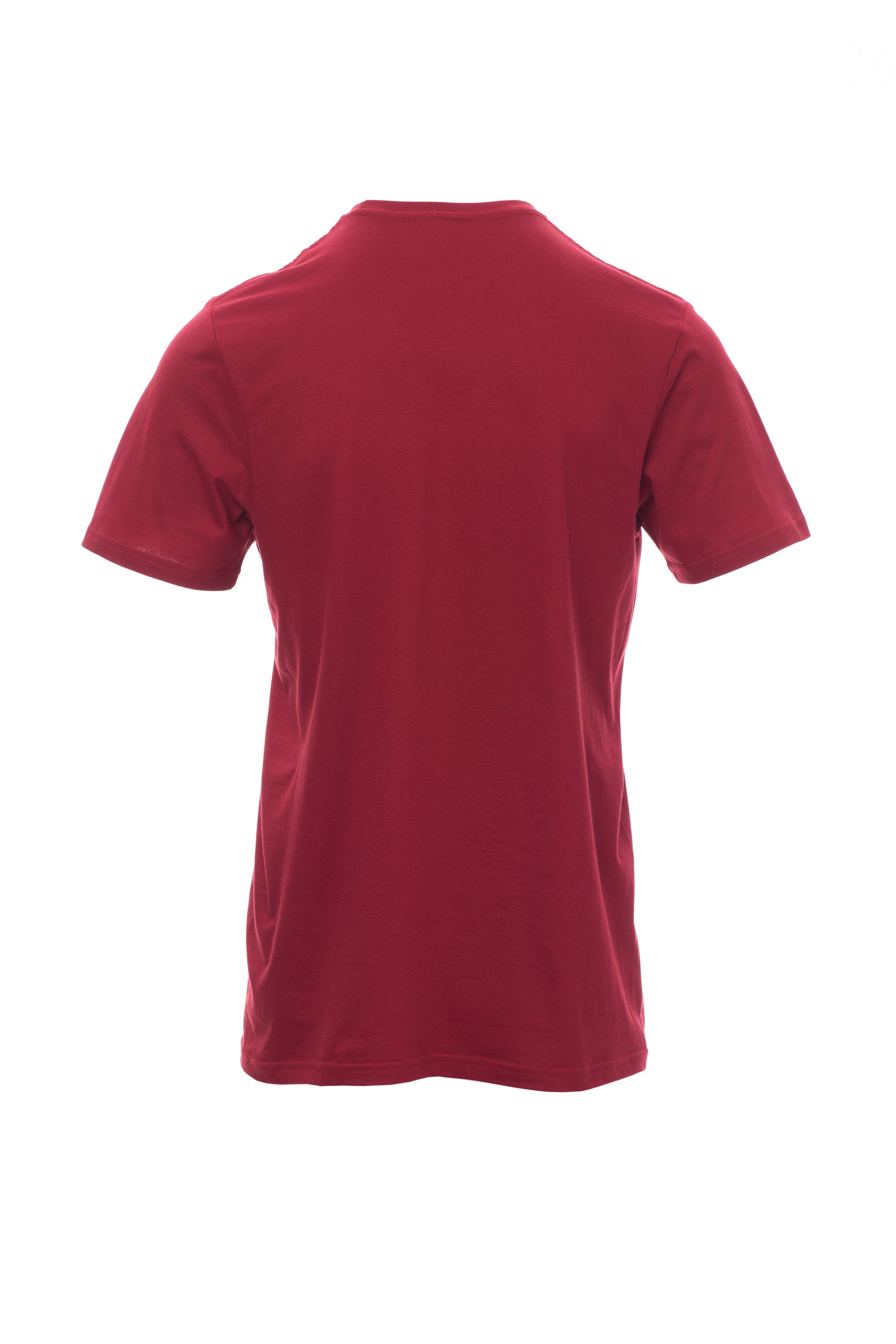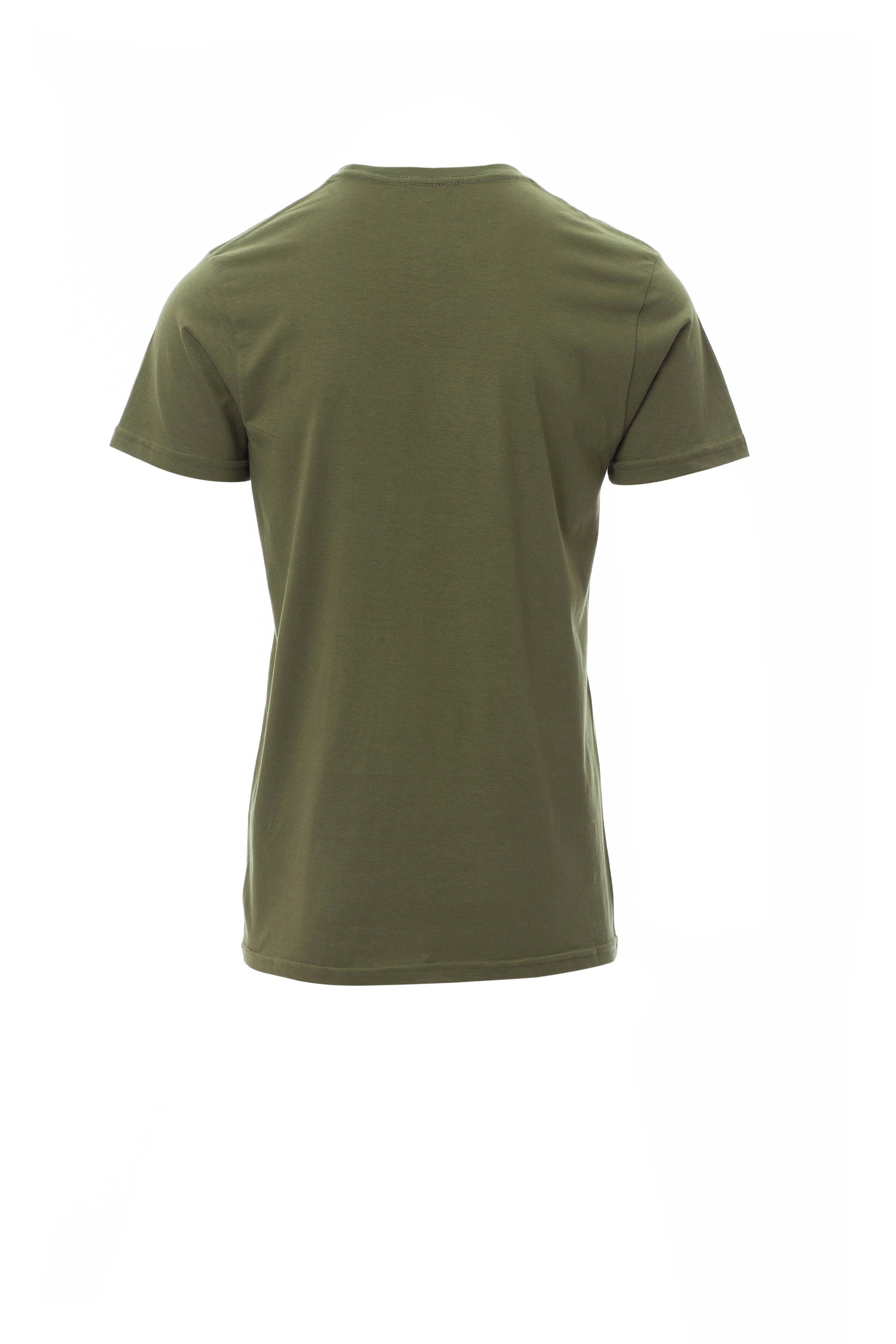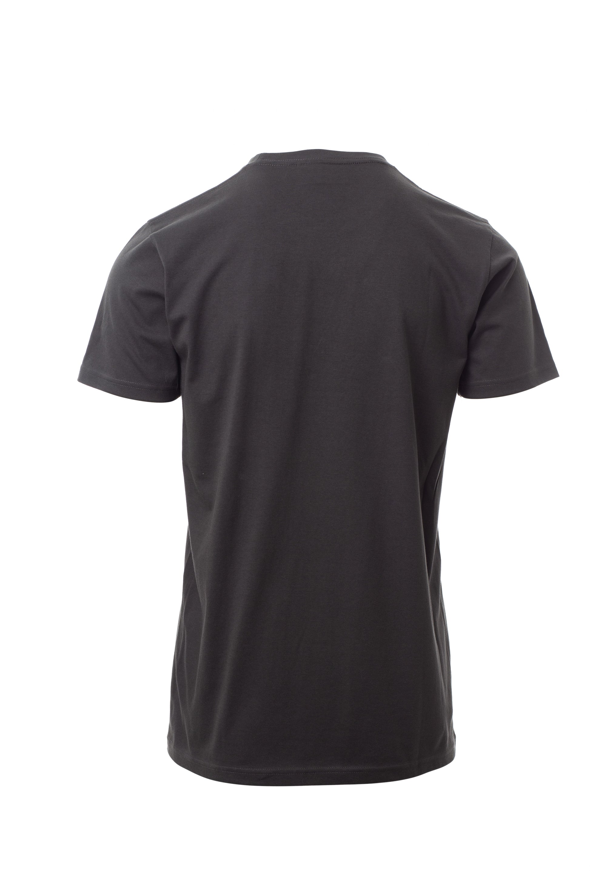 Kortærmet T-shirt med rund hals til mænd, med 1,5 cm spandex mix rib nakkebånd med kantsyning foran, kontrasterende skulder til skulder forstærkningsbånd synlig på indersiden af kraven, stræksømme, rørformet design.